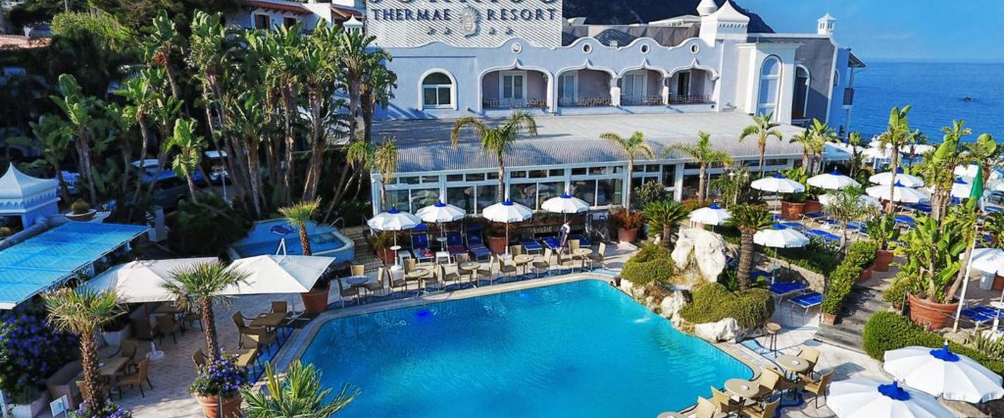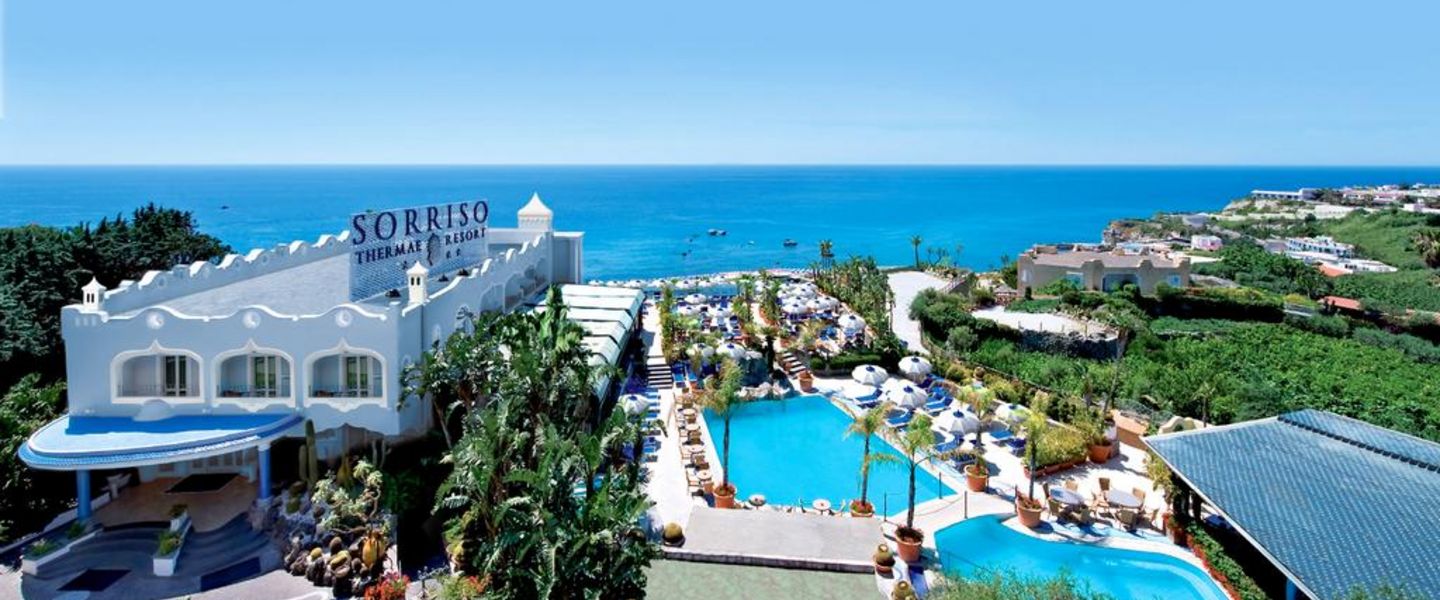 Das Sorriso Thermae Resort & SPA ist ein luxuriöses 4-Sterne-Hotel, das sich in Forio d'Ischia, einer malerischen Stadt auf der italienischen Insel Ischia, befindet. Umgeben von einer atemberaubenden Landschaft und dem klaren Wasser des Tyrrhenischen Meeres bietet das Hotel eine ideale Unterkunft für Reisende, die Entspannung, Wellness und die Schönheit der Insel genießen möchten.