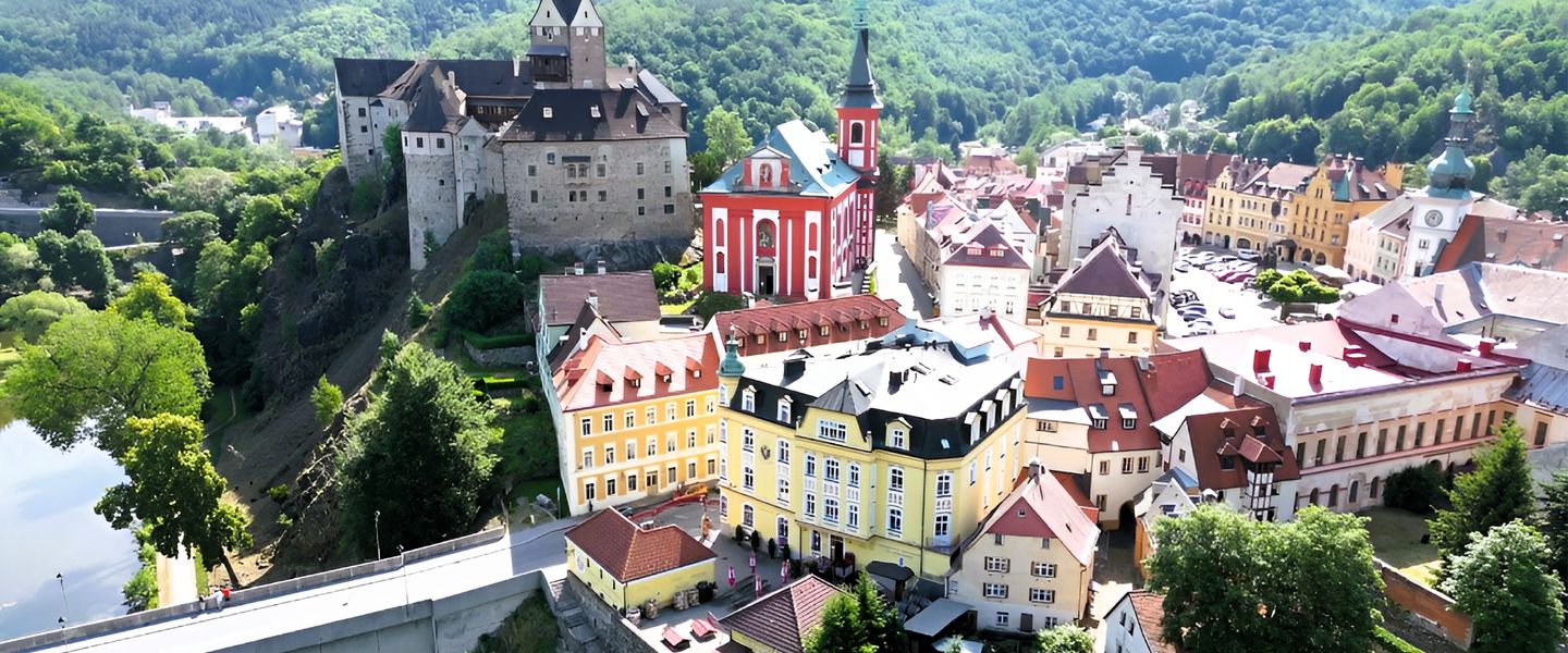 Begleiten Sie uns auf einen abwechslungsreichen Ausflug in die malerische Stadt Loket, die mit ihrem mittelalterlichen Flair und der einzigartigen Lage an einer Schleife der Eger begeistert. Schon von Weitem zieht die imposante Burg, die stolz über den Dächern der Altstadt thront, die Blicke auf sich. Sie gilt als eine der schönsten Burgen Böhmens und verleiht Loket seinen unverwechselbaren Charakter.
