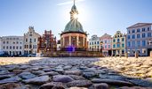 Marktplatz: Der Marktplatz von Wismar ist das Zentrum der Stadt und wird von historischen Gebäuden, darunter das beeindruckende Rathaus und die Wasserkunst, gesäumt.