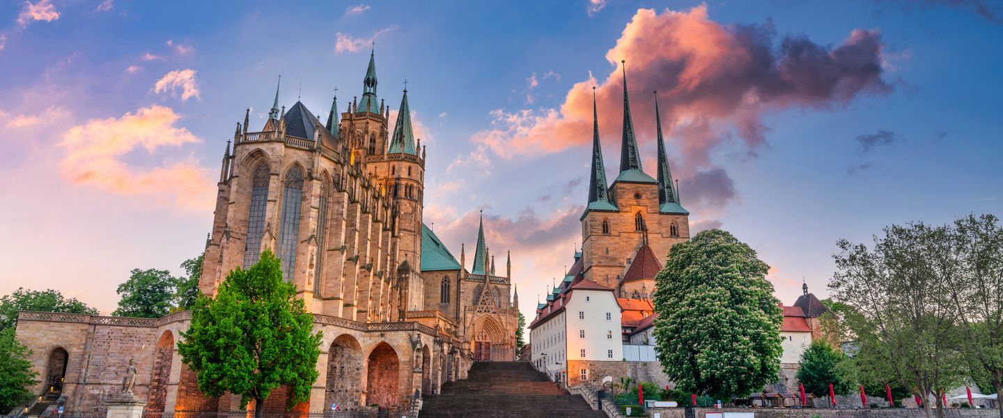 Am Mittag setzen wir die Fahrt nach Erfurt fort, eine Stadt, die mit ihrer mittelalterlich geprägten Altstadt begeistert. Hier haben Sie ausgiebig Zeit zur freien Verfügung. Flanieren Sie über die berühmte Krämerbrücke mit ihren kleinen Geschäften, besuchen Sie den eindrucksvollen Domplatz mit Mariendom und Severikirche oder entdecken Sie die vielen Boutiquen und Cafés, die zum Verweilen einladen. Auch ein Besuch eines Museums oder eine Auffahrt mit der Petersberg-Seilbahn bieten sich an und lassen den Aufenthalt zu einem ganz individuellen Erlebnis werden.