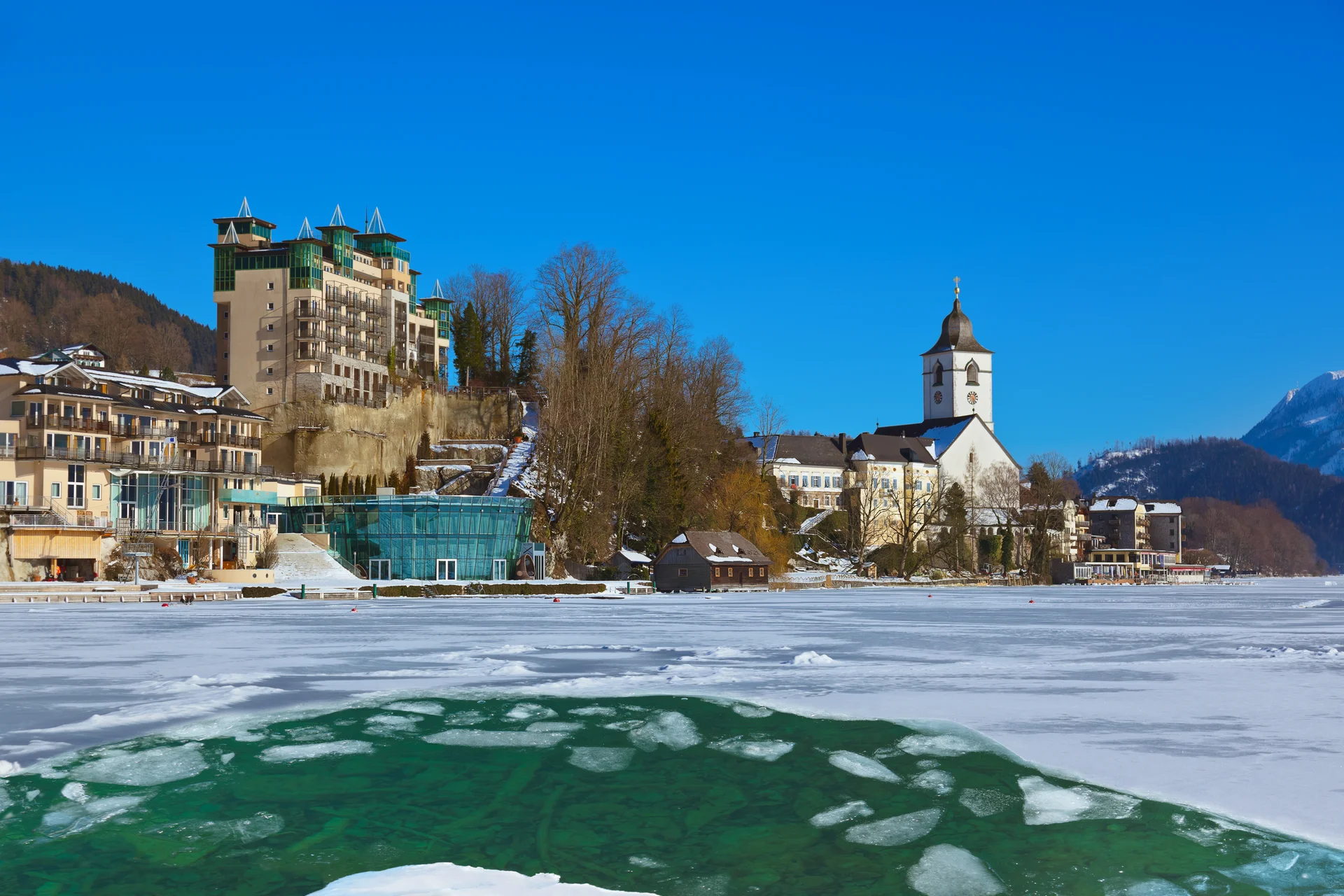 Der heutige Tag steht ganz im Zeichen des malerischen Wolfgangsees. Mit Ihrem örtlichen Guide entdecken Sie die atemberaubende Umgebung, die von majestätischen Bergen und glitzernden Wasserflächen geprägt ist. Eine Schifffahrt auf dem Wolfgangsee darf dabei natürlich nicht fehlen! Während der Fahrt genießen Sie die herrlichen Ausblicke auf die umliegenden Orte. Sie erkunden die charmanten Orte Strobl, St. Wolfgang und St. Gilgen. Strobl ist bekannt für seine idyllische Uferpromenade und die entspannte Atmosphäre, während St. Wolfgang mit seiner beeindruckenden Pfarrkirche und dem berühmten Weißen Rössl begeistert. St. Gilgen, die Geburtsstadt von Mozarts Mutter, verzaubert mit ihren bunten Häusern und der malerischen Lage. In St. Wolfgang erwartet Sie zudem eine süße Köstlichkeit! Genießen Sie die Zeit in dieser traumhaften Umgebung, bevor Sie am Abend zurück ins Hotel fahren.